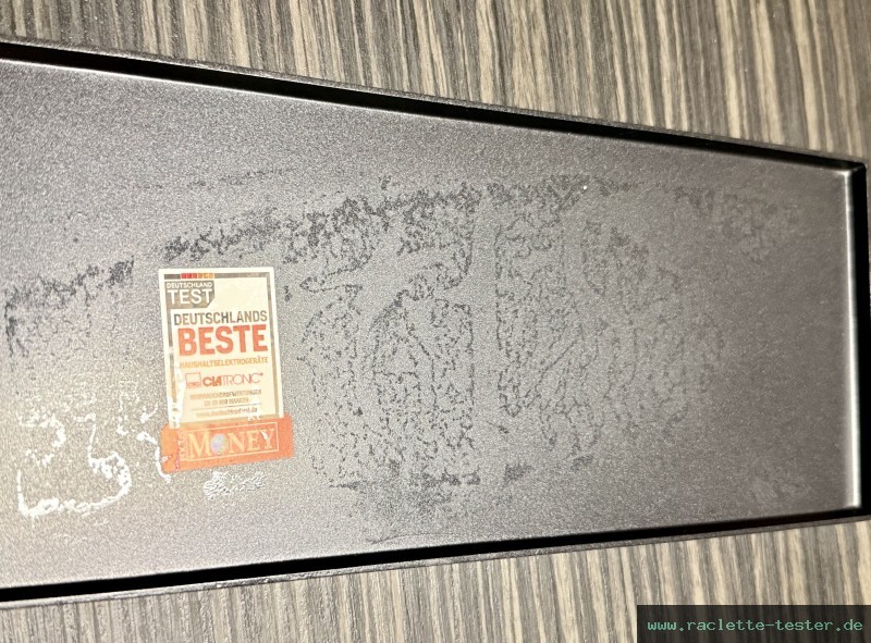 Vorteilhaft ist, dass durch die Antihaftbeschichtung kaum Rückstände haften bleiben und die Platte und Pfännchen einfach abgewaschen werden können.