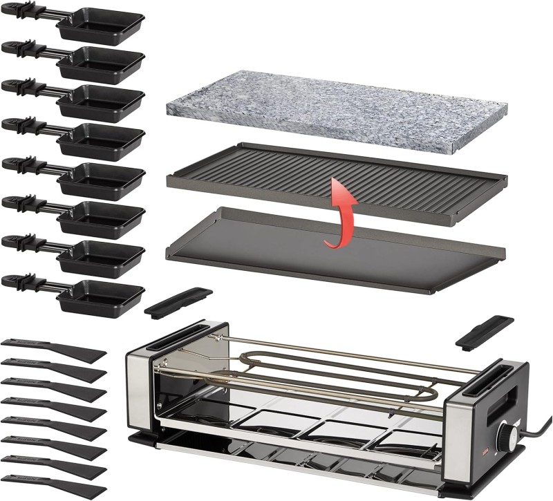 Das Raclette hat erfreulicherweise einen Temperaturregler eingebaut. Dies ermöglicht es, die Hitze individuell anzupassen, was besonders praktisch ist, wenn gleichzeitig empfindliches Gemüse und Steak gegrillt werden sollen.